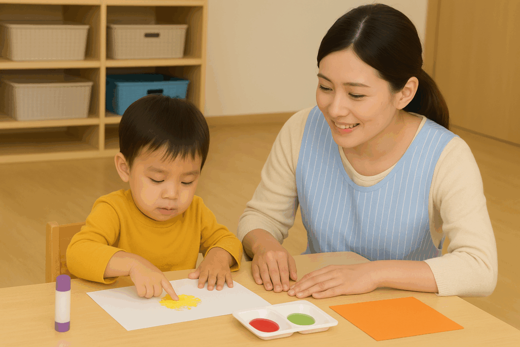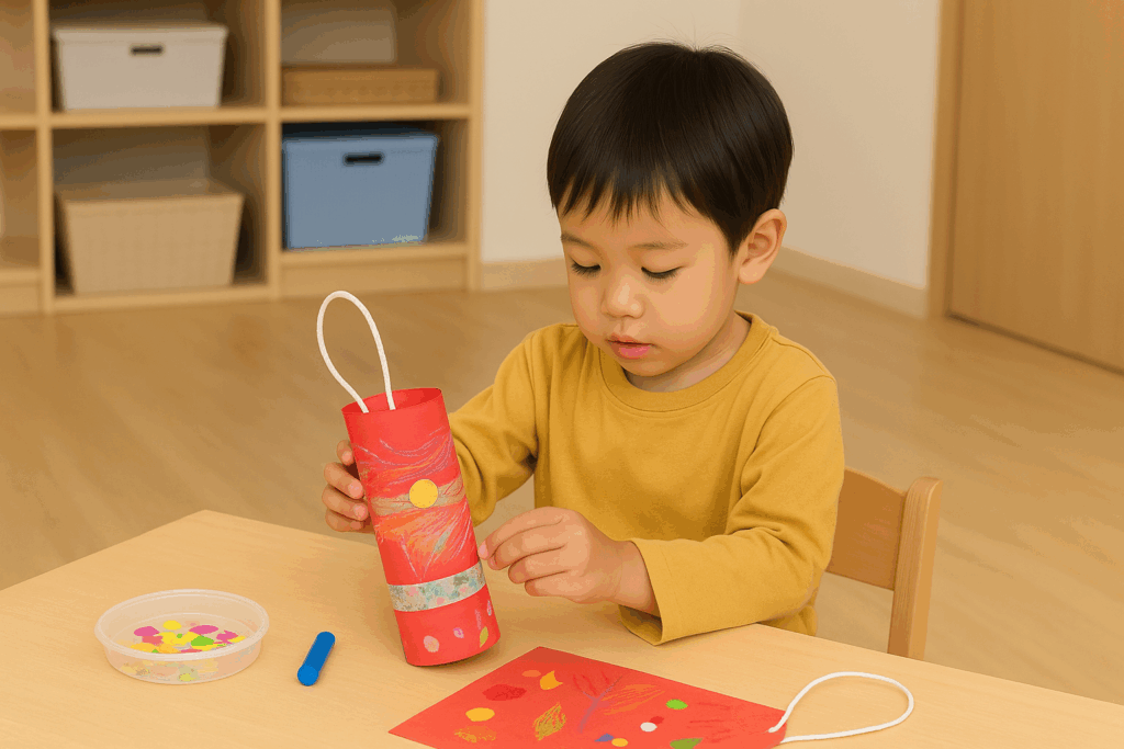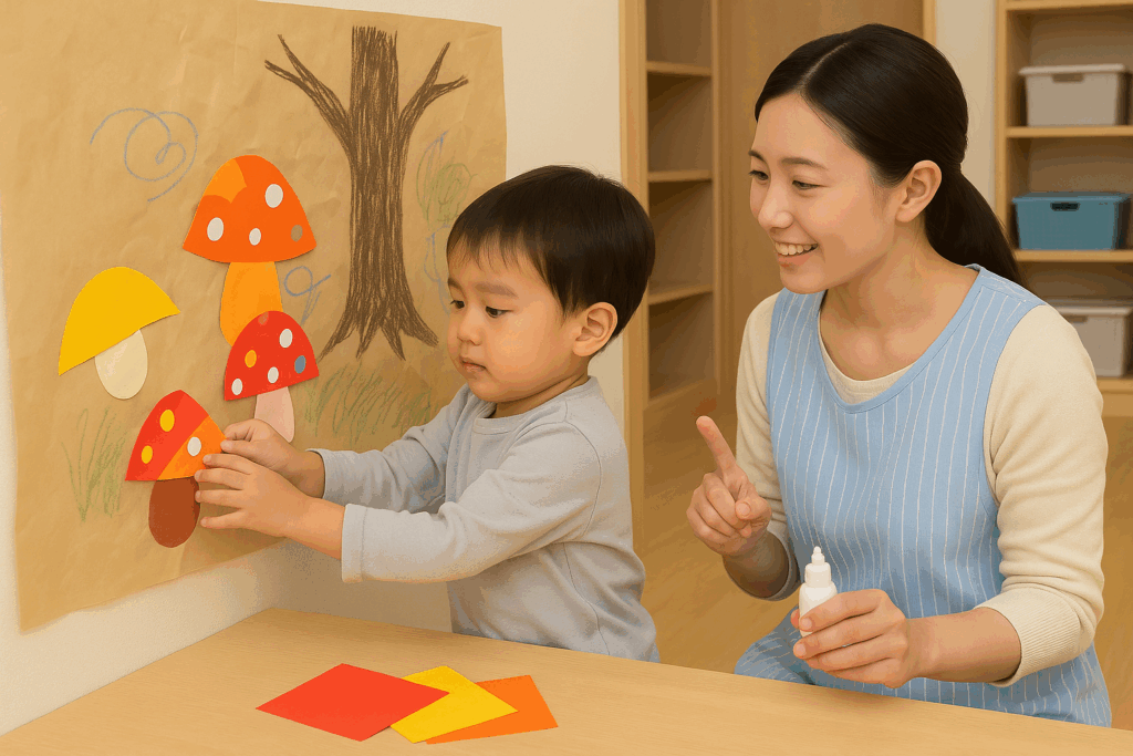 この時期の製作では、「ちょっとだけ難しいこと」に挑戦できる環境づくりが大切。保育士が少し手を添えるだけで、子どもたちは「できた!」という達成感を味わうことができます。季節の行事(七五三・勤労感謝の日)にもつなげやすい時期なので、テーマ性のある活動を取り入れるのもおすすめです。