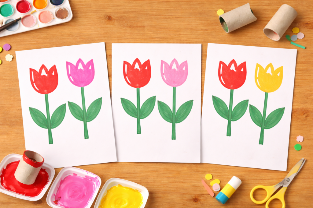 チューリップは赤、黄色、ピンク、紫などさまざまな色があります。そのため製作を通して、自然と色への興味や認識を育てることができます。