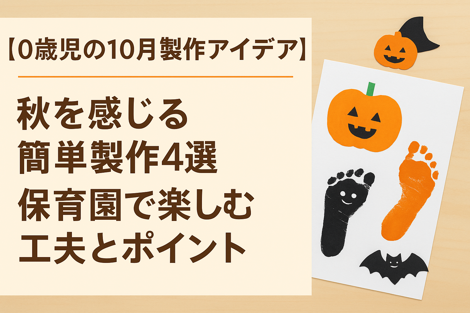 【10月製作の魅力と1歳児の発達に合ったねらい】 1歳児にとって製作活動が大切な理由 保育園での製作活動は、単なる遊びではなく、子どもの発達を大きく支える大切な経験です。特に1歳児は、手先の動きや感覚の発達が急速に伸びる時期。製作を通して「つか... -